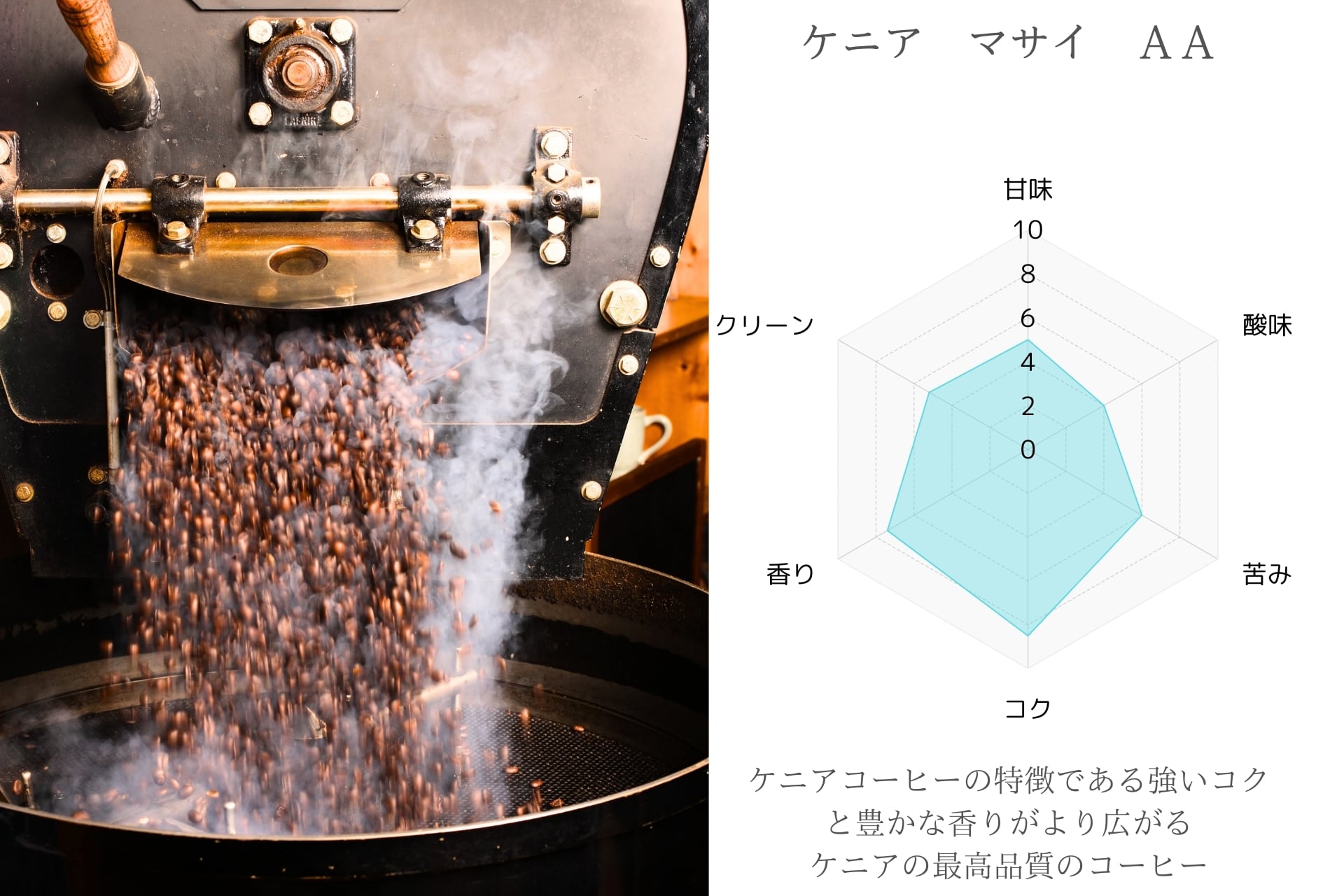 ケニアコーヒーの特徴である強いコクと豊かな香りがより広がるケニアの最高品質のコーヒー
