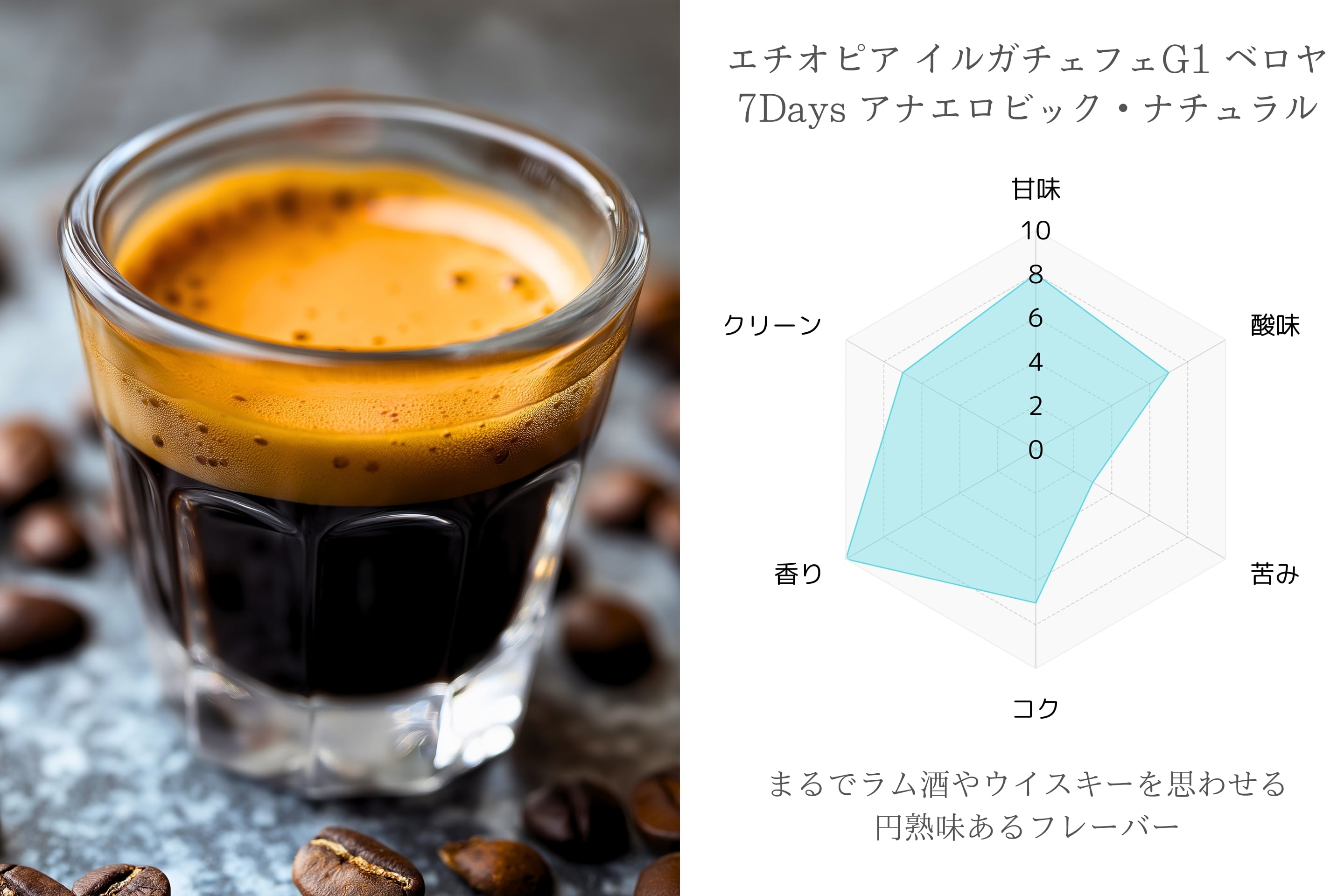 イルガチェフェ産の華やかな果実味が特徴のナチュラルプロセスのコーヒー豆が、アナエロビックプロセスを経ることで、